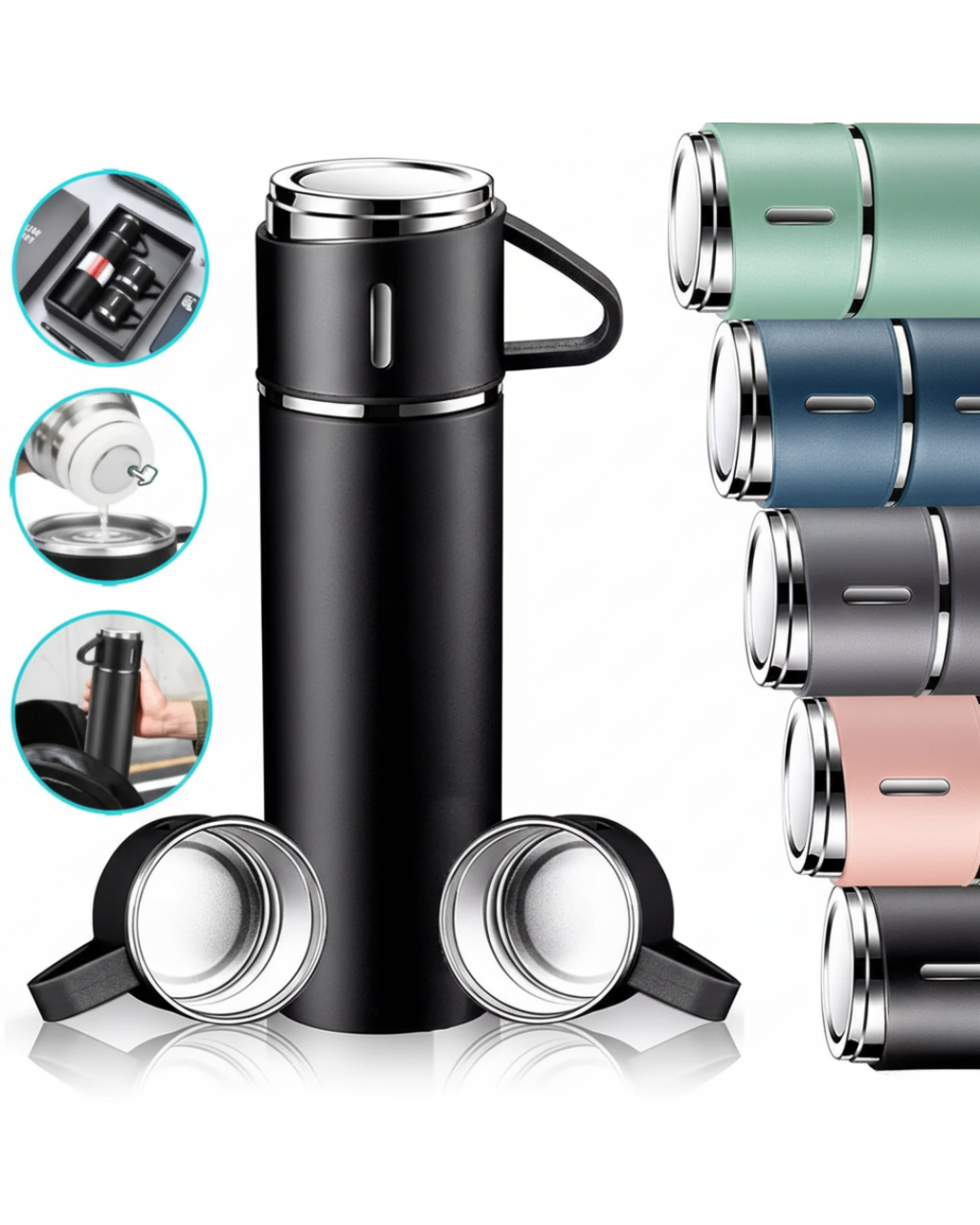 🔸 Garrafa 500ml + 3 Xícaras