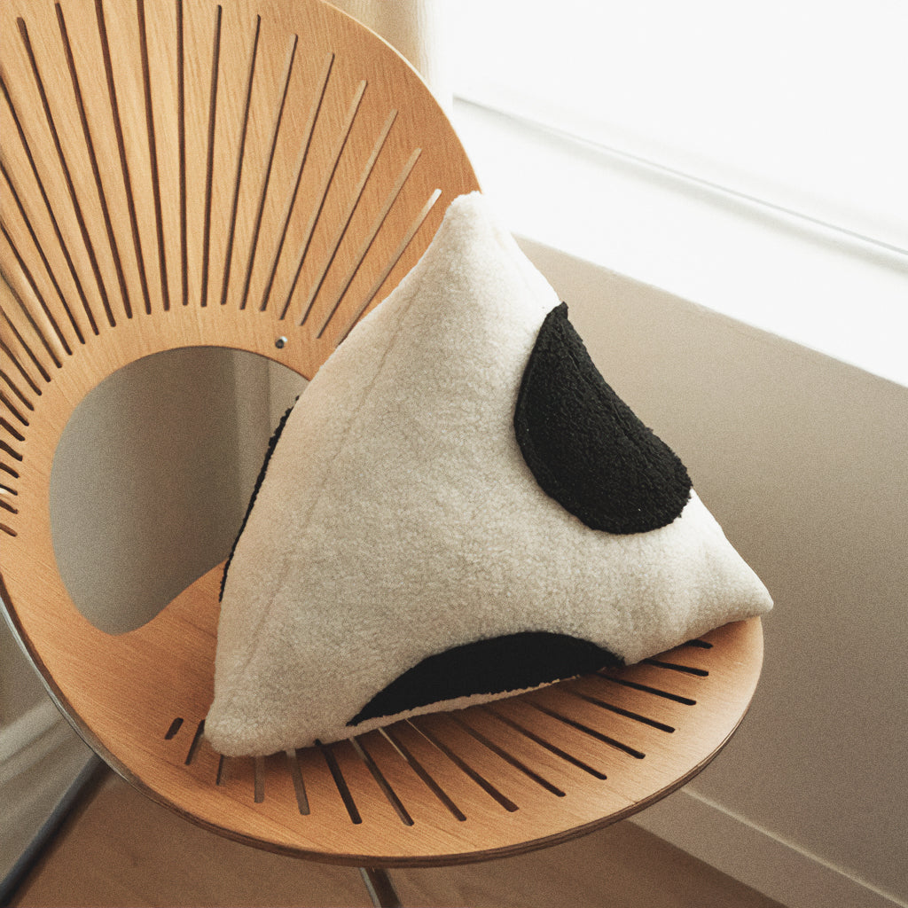 Sua forma triangular adiciona movimento e personalidade à decoração, sem abrir mão do aconchego.