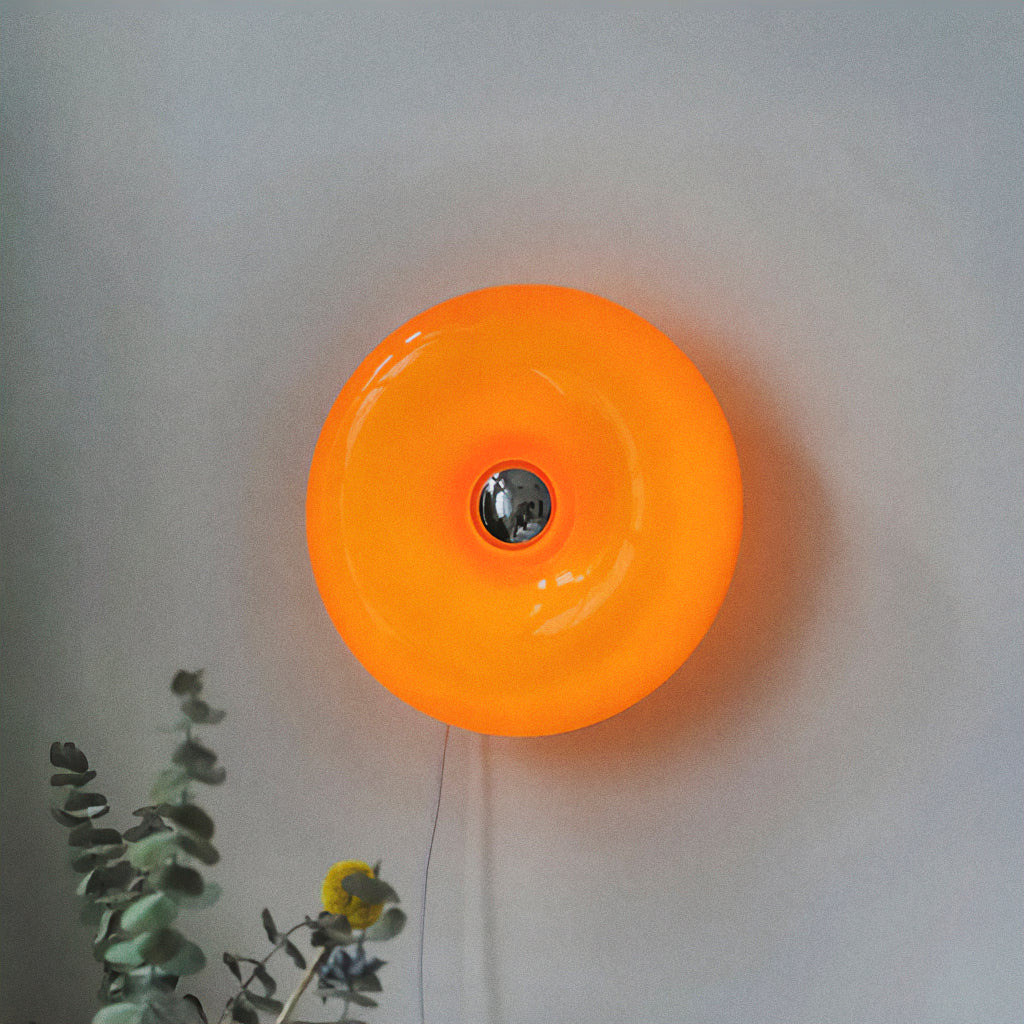 Circular como um sol suspenso, a Arancio traz para dentro de casa a vibração calorosa dos anos 50,